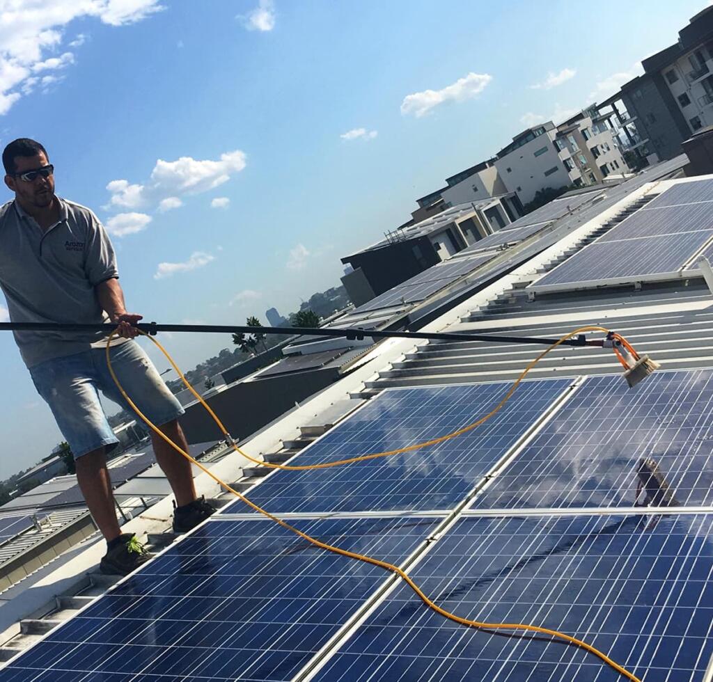 Dirty panels can lose up to 30% of their efficiency. Add a solar panel clean to any house wash or roof clean.